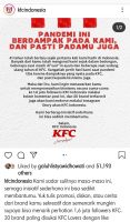 Menyusul kampanye solidaritas Burger King, waralaba yang mengusung tagline ‘Jagonya Ayam’, KFC juga menunjukkan solidaritasnya untuk membantu Usaha Mikro Kecil dan Menengah (UMKM). KFC memberi kesempatan kepada UMKM untuk mempromosikan bisnisnya lewat akun instagram @kfcindonesia.